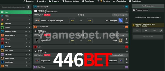 O 446Bet oferece uma grande seleção de opções de apostas em e-sports com probabilidades competitivas